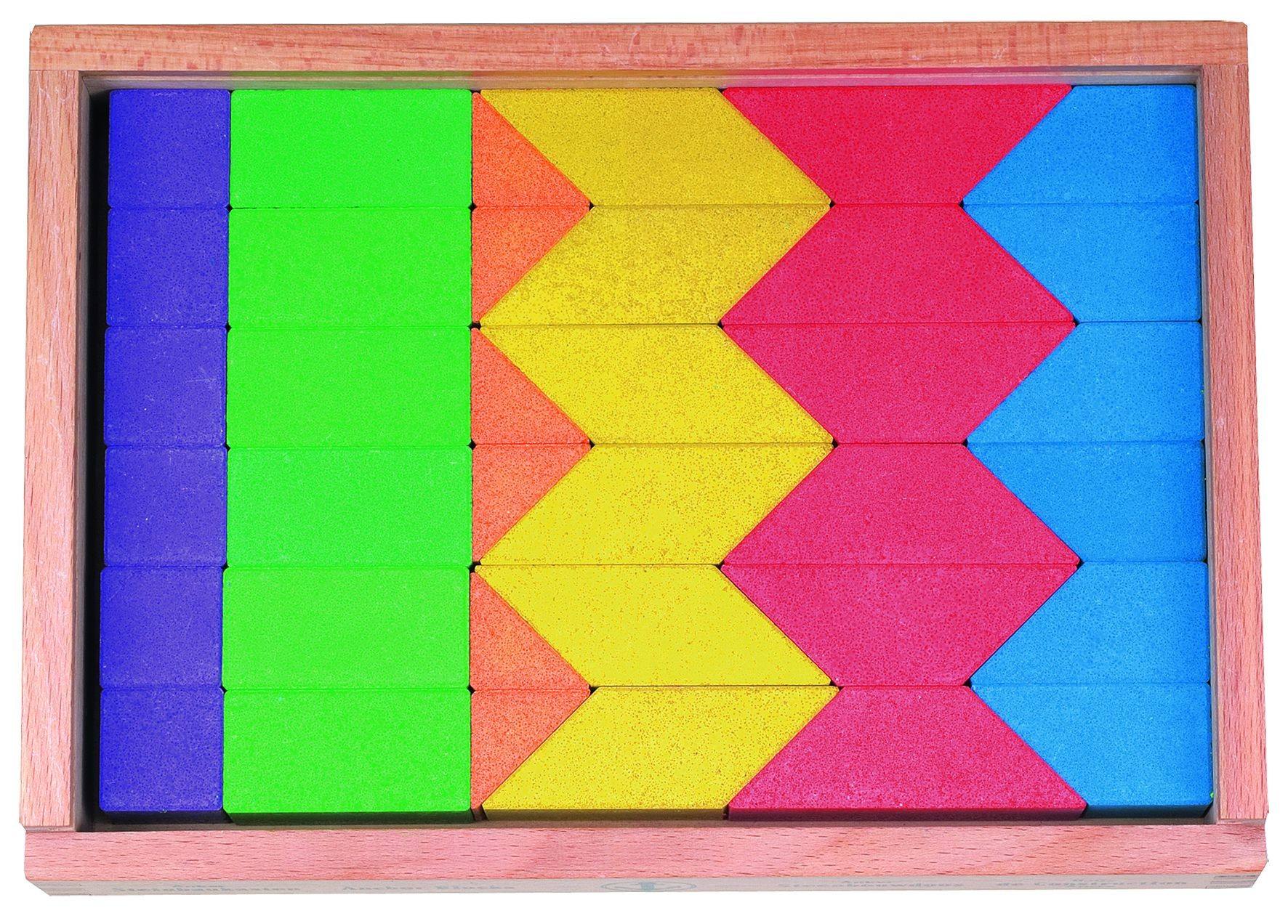 In dem Holzkasten befinden sich 36 Bausteine aus dem Material der Original-Ankersteine kannst du kreative Bauwerke errichten und dabei Deiner Fantasie freien Lauf lassen. Es gibt unzählige Möglichkeiten aus den Steinen der Neuen Steinzeit Mosaiken, ästhetisch ansprechende Legespiele und Bauten zu errichten.