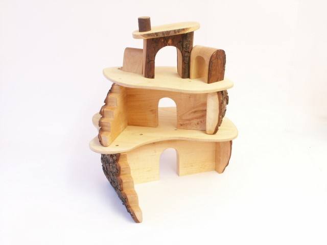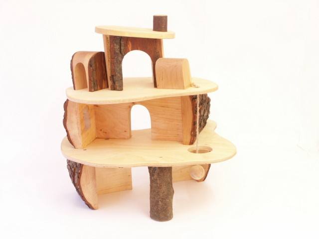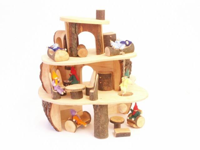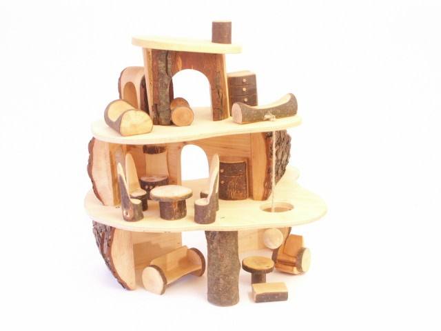 - kleines Puppenhaus Puppenbaumhaus aus Rindenästen und Erle