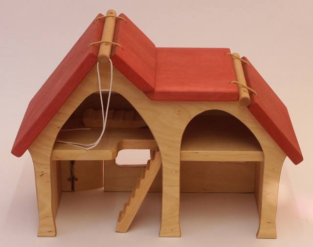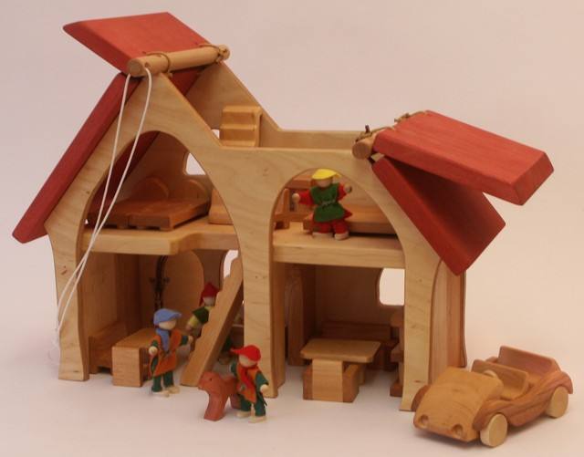 Es handelt sich bei diesem Artikel um das Decor Wohnhaus, mit 2 Stiegen. Dies ist ein schön gestaltetes Haus mit seinem markanten roten Dach. Das Decor Wohnhaus, mit 2 Stiegen kann auch als Bauernhaus, Laden und Werkstatt oder ähnliches genutzt werden. Die Dächer sind zum Aufklappen. So können auch die oberen Bereiche gut bespielt werden. Die mitgelieferten Stiegen ermöglichen den Aufstieg ins Obergeschoss und auf die Dachterrasse. Mit Hilfe des Seils am Giebel können Vorräte nach oben gezogen werden.