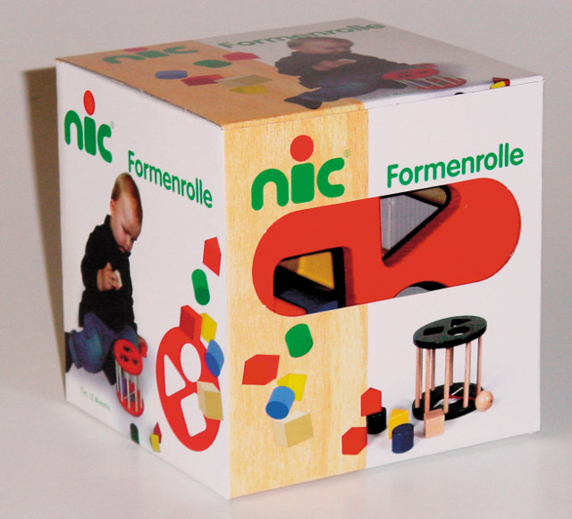 Die nic Formenrolle, natur ist eine tolle Sortierbox. Farben sehen, Formen greifen und durch die passende Öffnung stecken. Die nic Formenrolle, natur ist ein Lernspielzeug, das wirklich Spass macht.