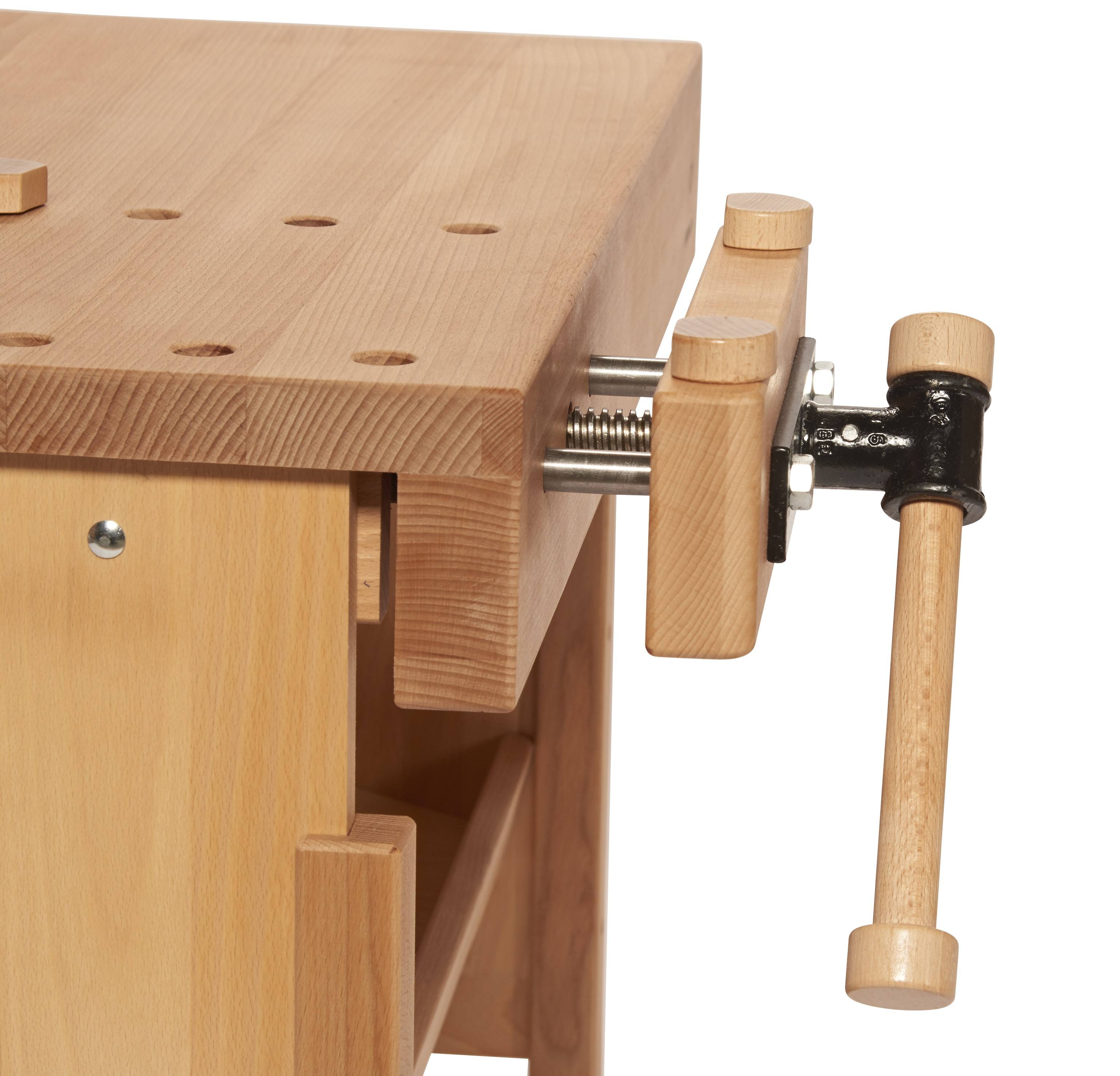Die Glückskäfer Werkbank wird aus geöltem Buchen-Massivholz hergestellt. Die Werkbank wird inklusive hochwertiger Metall-Spannzange geliefert. Die Glückskäfer Werkbank allerhöchste Qualität für kleine und große Handwerker-Profis. Die Arbeitshöhe der Werkbank ist variabel einstellbar. Zur Aufbewahrung der Werkzeuge ist eine Mulde in die Bank eingefräst.