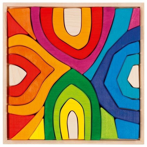 Die liebevoll in Europa aus Ahornholz gefertigten und in Regenbogen-Farben gestalteten Bausteine repräsentieren die vier Jahreszeiten und laden zum phantasievollen freien Spielen ein.