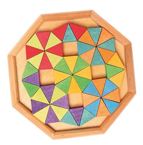 Erforschen was die Dreiecksform zu bieten hat: Vom kleinen zum großen Dreieck, vom Sechseck zum Sechsstern - welche geometrischen Formen lassen sich noch mit den gleichschenkligen Dreiecken legen? In einer Form stecken so viele weitere Formen! Auch Tiere können gelegt und gebaut werden, und natürlich Bauwerke für Püppchen und Autos.