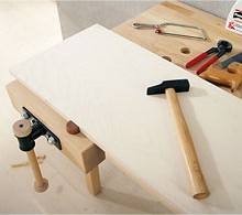 Die HABA Hobelbank, Werkbank ist gewachst und hat eine 2 cm starke Arbeitsplatte. Die Spannzange bewegt sich in einer exakten Metall-Parallelführung. In der Arbeitsplatte der HABA Hobelbank, Werkbank befinden sich Bankhakenlöcher einschließlich zweier Bankhaken aus Kunsstoff (damit nichts stumpf wird). Für Laubsägearbeiten ist an der HABA Hobelbank, Werkbank ein besonderer Ausschnitt vorgesehen. Die Bank hat einen integrierten Bankknecht.