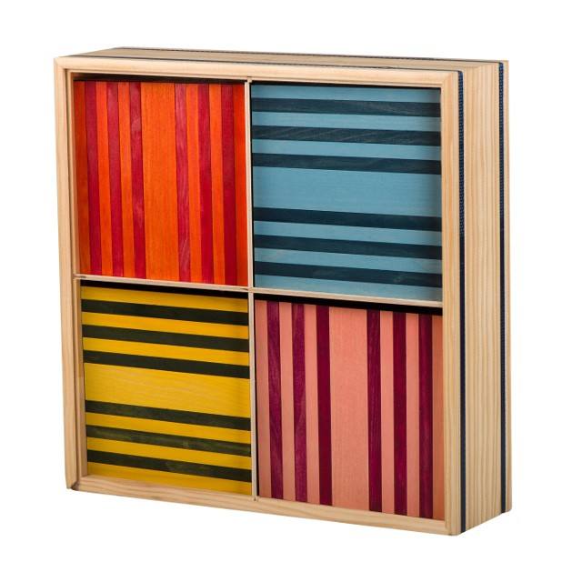 Entdecke eine neue KAPLA Welt! Das natürliche Pinienholz aus Südfrankreich harmoniert einmalig mit den farbigen Plättchen!