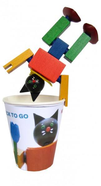 Die ist die erste Steckfigur für unterwegs. Eine Steckkatze mit grosser Schleife ins Osternetz gestellt. 200 ml Spielvergnügen -einfach heiß. Steck to go ist das figürliche Spielgetränk - klein und fein.