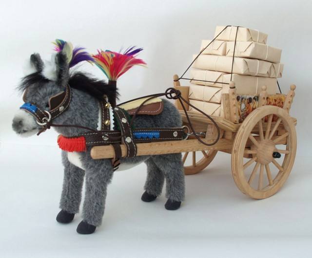 Da es keinen schönen sizilianischen Eselswagen gibt, stellt ihn Kösen in aufwändiger Handarbeit in Bad Kösen selbst her. Eine Herausforderung an einen Plüschtierhersteller.