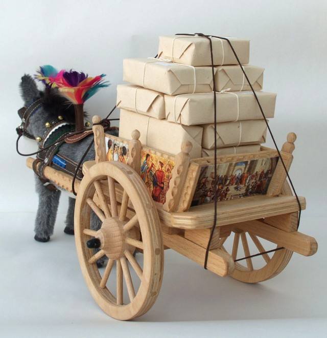 aufwändiger Handarbeit gefertigt. Der sizilianische Eselswagen hat eine Größe von