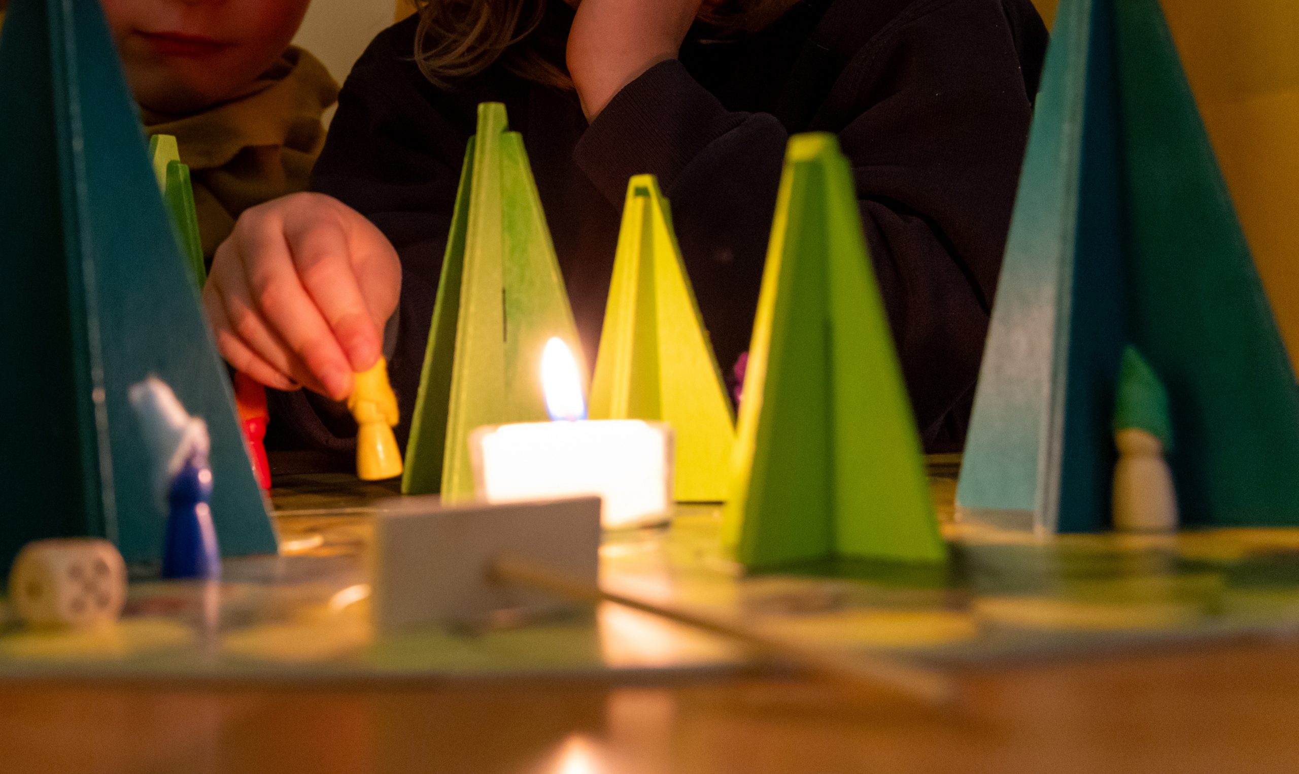 Das Spiel dreht sich um ein stimmungsvolles Brett, das als einfaches Puzzle aus robustem, farbenfrohem Holz zusammengesetzt wird. Auf der Vorderseite für Kinder ab fünf Jahren und der Rückseite für Kinder ab sieben Jahren bietet es zwei kooperative Würfelspiele für zwei bis acht Mitspieler. Die Zwerge im Wald verstecken sich im Schatten der Bäume, und mit einer echten Kerze, die nur unter Aufsicht eines Erwachsenen verwendet wird, werfen die Spieler Schatten, um die Zwerge gemeinsam zu entlarven. Jeder Wurf des Würfels bringt neue Überraschungen: Es gilt, die Zwerge einzusammeln, bevor der Schattenwald zu dicht wird. Die magische Atmosphäre entsteht durch das flackernde Kerzenlicht, das die Figuren lebendig wirken lässt und ein einzigartiges Erlebnis aus Licht und Dunkelheit schafft.