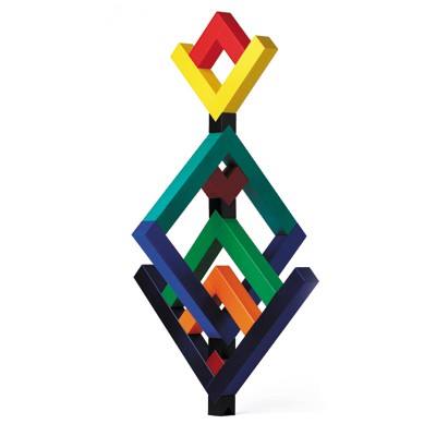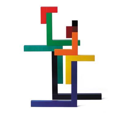 Das Naef Angular ist eine Hommage an den Rechten Winkel. Acht Winkel und ein Würfel bilden raffinierte Architekturen aus Pfeilern, Säulen und Streben. Angular ist ein Spiel des rechten Winkels und der Farben. Die Spielpalette ist variantenreich und spannend zugleich.