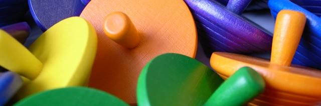 Da sich alles um Holz dreht - kleine Holzkreisel in den Farben gelb, orange, rot, violett, blau und grün. Bitte wählen Sie Ihren Farbwunsch unten in den Optionen aus.