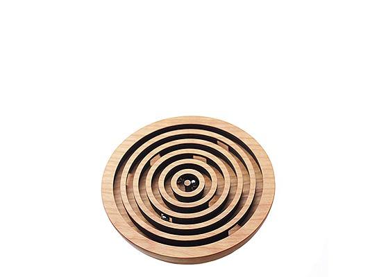 Mit Sphaera hält man ein wunderschönes, aus Kirschbaum gefertigtes Kugelsegment in der Hand, auf dessen Schnittfläche sich ein konzentrisch angeordnetes Labyrinth befindet. Es gilt, Kugeln durch fünf Ringe bis ins Zentrum zu bewegen. Gedacht ist dies schnell, doch es bedarf Geschicklichkeit und Geduld, um ans Ziel zu gelangen, denn die Durchgänge zwischen den Ringen sind nicht auf den ersten Blick sichtbar. Ein Spiel mit einer meditativen Dimension.