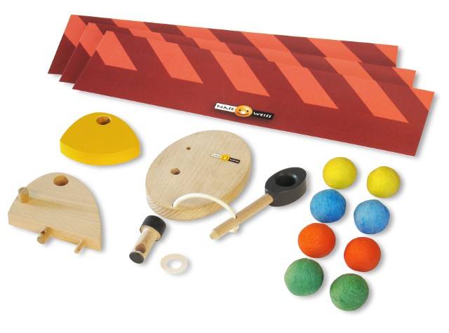 Mit dem NASEWEISS Katapult lassen sich leichte Kugeln über abenteuerliche Kurse bis ins Ziel schießen. Dabei fördert es Geschicklichkeit und Geduld.