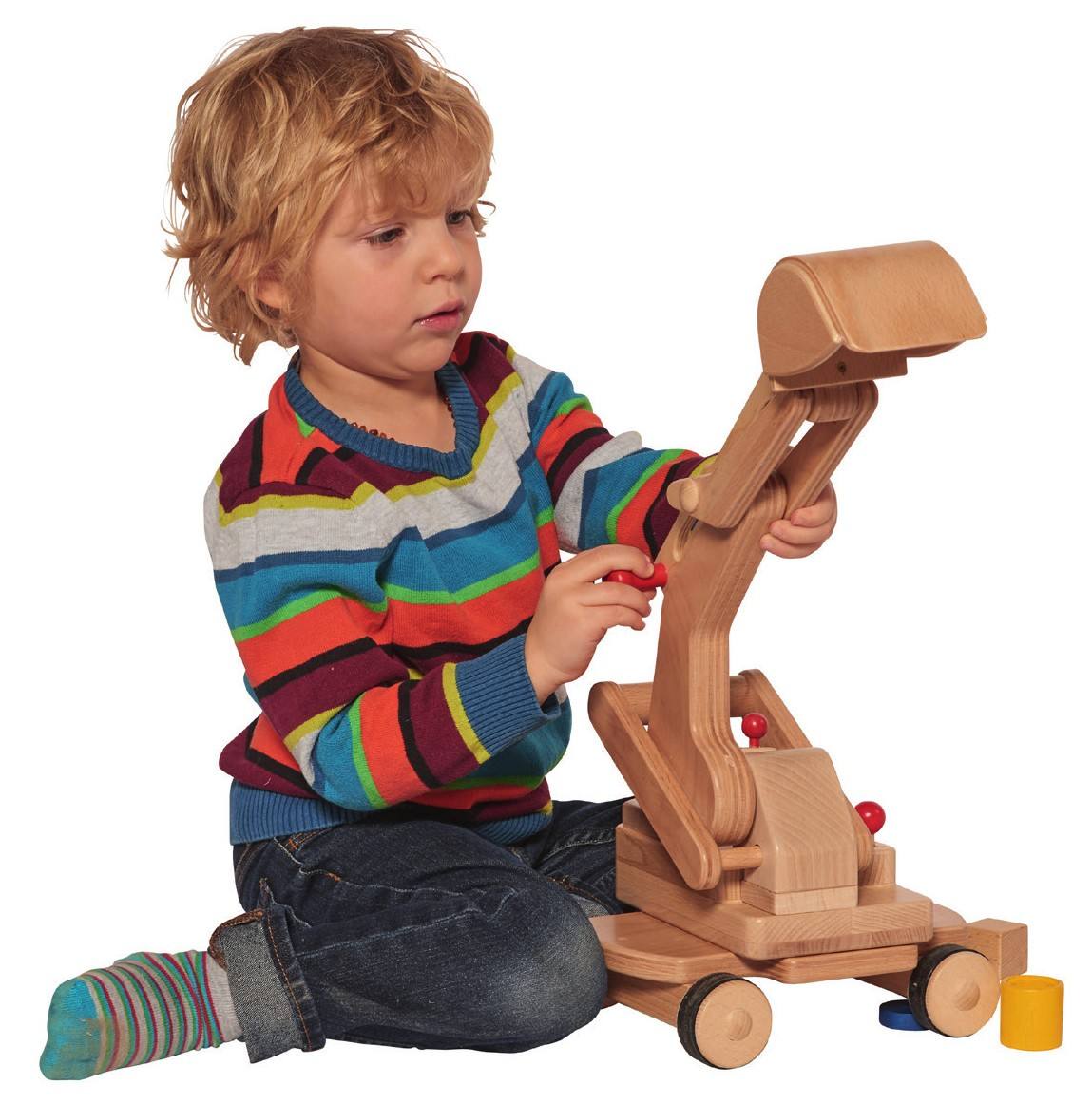 Schaufel lässt sich über einfache Handgriffe öffnen und schließen. Selbst 360°-Drehungen des gesamten Oberteiles lassen sich mit Kinderhänden verwirklichen. Der Fantasie und dem Tatendrang auf der Baustelle steht nun nichts mehr im Wege.