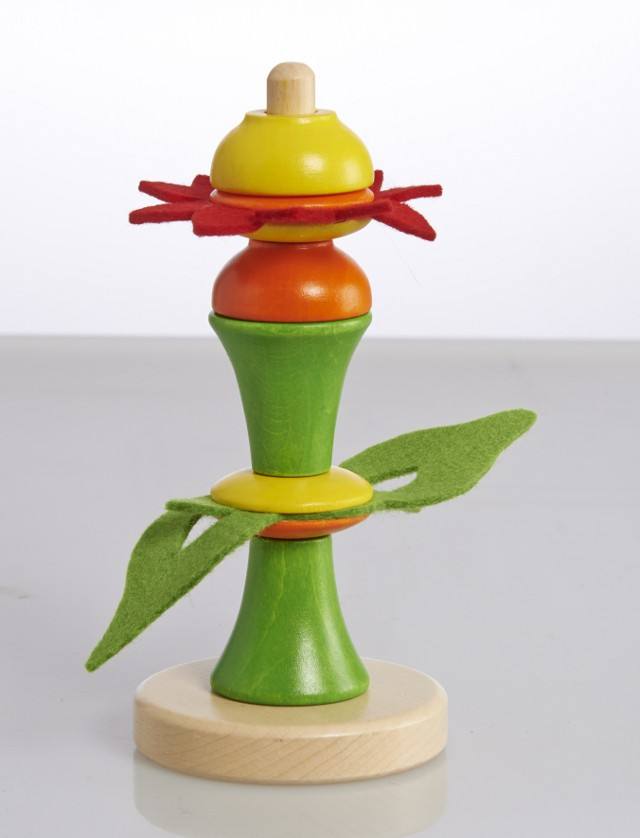 Es handelt sich um die nic Steckblume. Diese Steckblume ist schön bunt. Mit Fantasie können verschiedene Varianten gesteckt werden. In Verbindung mit dem Filz kann ein tolles Motiv entstehen.