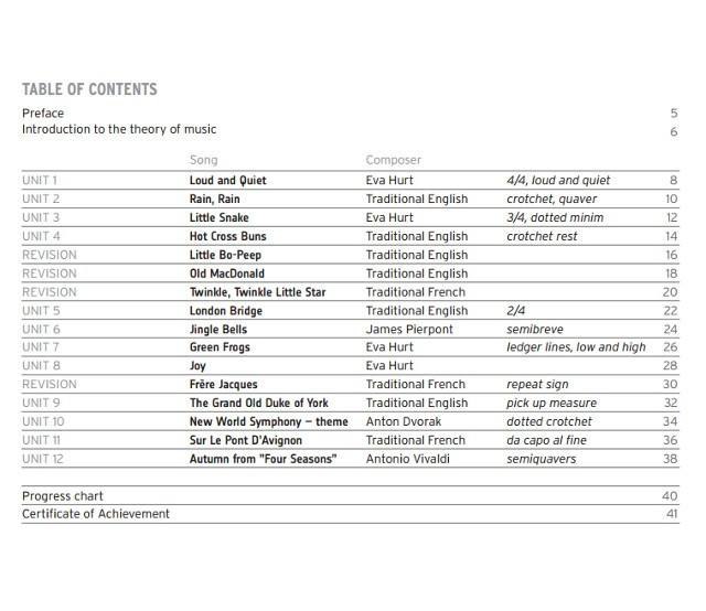 Dieses in Englisch verfasste Buch wurde von der professionellen Musiklehrerin Eva Hurt speziell für Kinder zwischen 5 und 7 Jahren geschrieben.