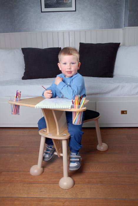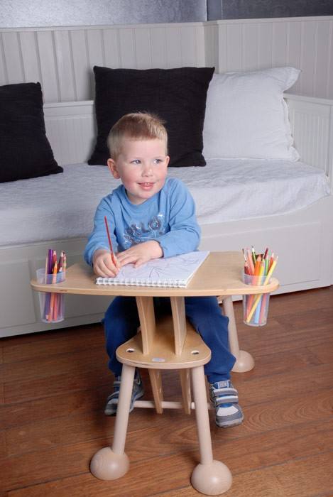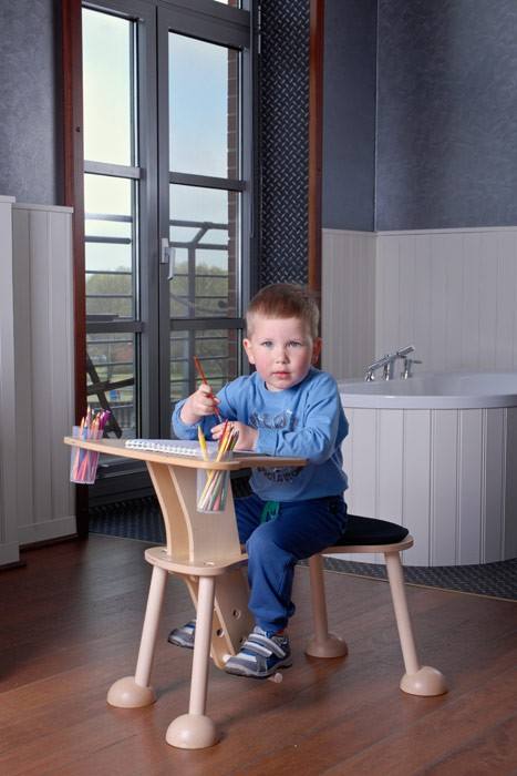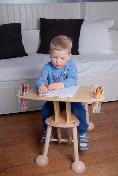 Hier darf gekleckert und auch geklotzt werden. Der timkid Clexo ist Tisch und Sitzmöbel in einem. Kleine Bastler oder leidenschaftliche Bilderbuch-Gucker im Kindergarten- und Vorschulalter sitzen bequem wie auf einem Pferd und nehmen dabei spielerisch eine optimale Haltung ein. Die geneigte Tischplatte bietet zudem Ablagemöglichkeiten für Stifte, Becher und Krimskrams.
