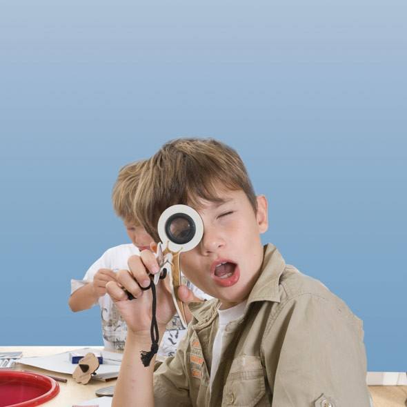Ein Einsatz in der Mitte des Tisches ermöglicht vier Bechern sicheren Stand für Malutensilien. Statt des Einsatzes kann auch eine Schale zum Aufbewahren von kleinem Spielzeug eingesetzt werden.