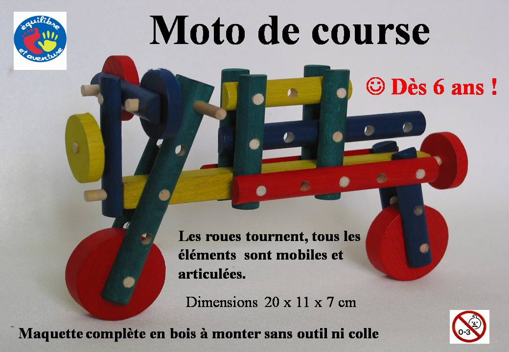 equilibre et aventure Motorrad, natur equilibre et aventure Holzbaukästen Es handelt sich um den Artikel equilibre et aventure Motorrad, natur. Dabei handelt es sich um einen Holzbaukasten für ein Rennmotorrad. Die Holzteile werden mittels Holzstiften zusammengebaut. Durch dieses originelle Konzept wird weder Klebstoff noch Werkzeug benötigt. Das Produkt wird in Handarbeit in Frankreich hergestellt.