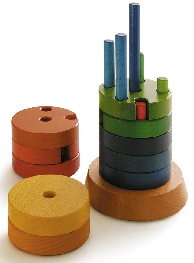 Ziel des Spiels ist es, die 10 farbigen Scheiben zu einem Turm aufzuschichten. Die Schwierigkeit besteht darin, dass die Scheiben je eine unterschiedliche Anzahl Löcher aufweisen.