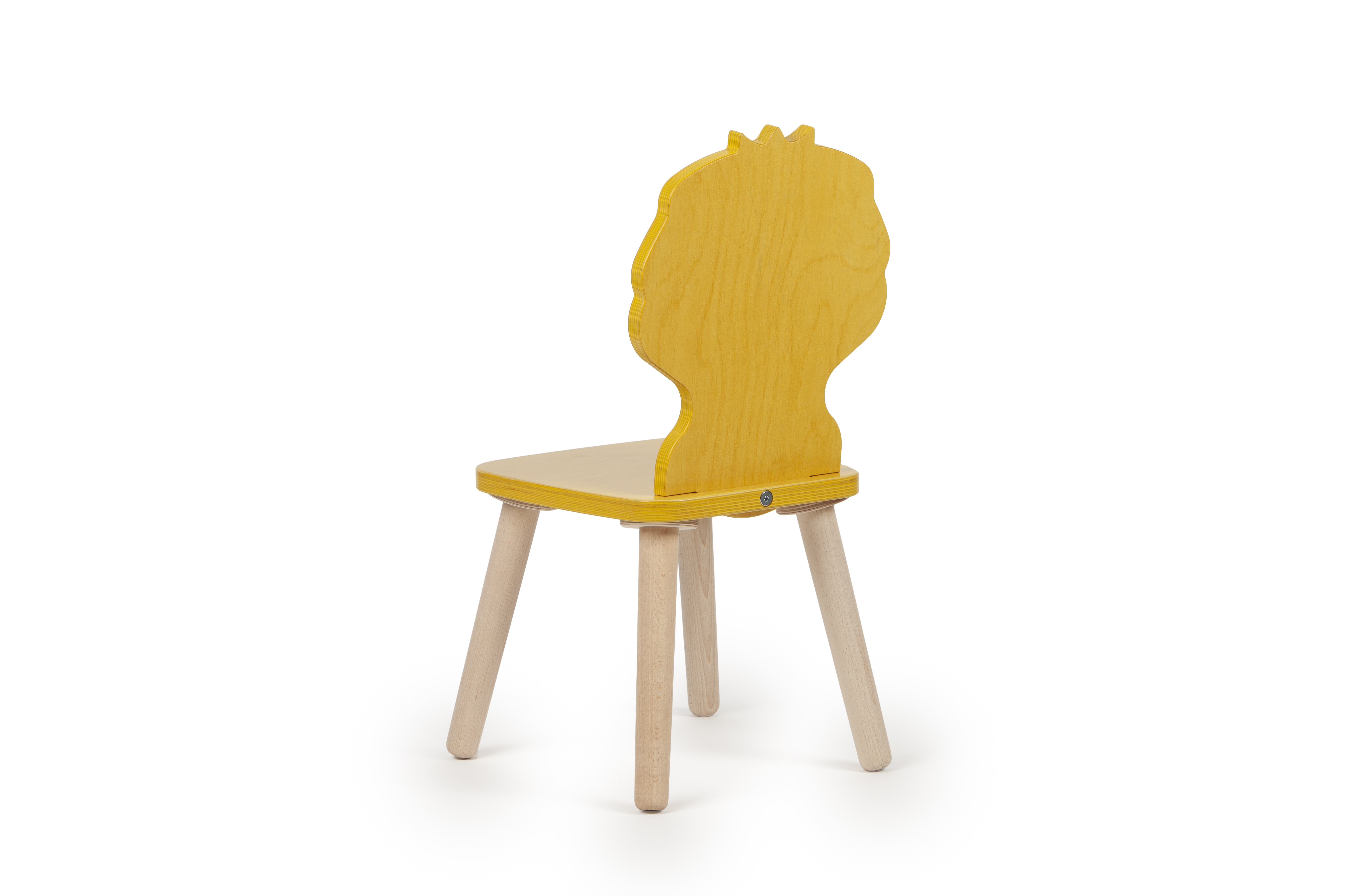 Der Kinderstuhl Löwe von Weizenkorn ist ein liebevoll gestalteter Holzstuhl für Kinder, der durch sein fröhliches Löwenmotiv auf der Rückenlehne besticht. Mit einer Größe von 60 × 30 × 30 cm und einer Sitzhöhe von 28 cm eignet er sich ideal für Kinder im Vorschulalter.