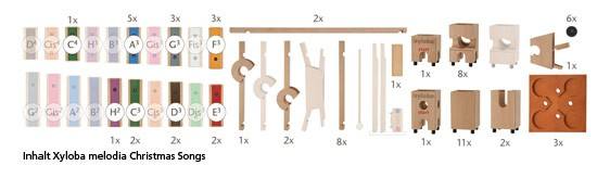 Der Xyloba Kugelbahn Melodienkasten Christmas Songs ist ein Set der Xyloba Kugelbahn. Dieses ermöglicht es die Anfänge von 8x Christmas Melodien mit der Xyloba Kugelbahn zu bauen.