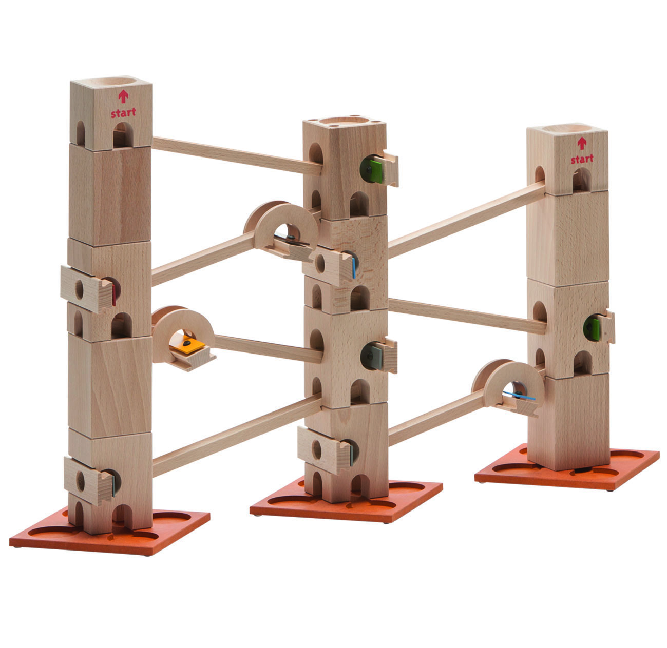 Kinder wie Eltern sind begeistert, denn die Xyloba Kugelbahn vereint Bauspaß mit Musik. Sie fördert Motorik, Vorstellungsvermögen, planerisches Denken und den kreativen Umgang mit Musik.